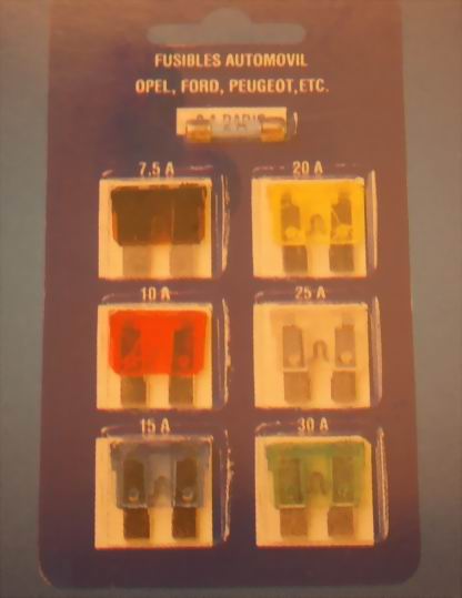 fusibles de lámina (coche) de varios amperajes. |